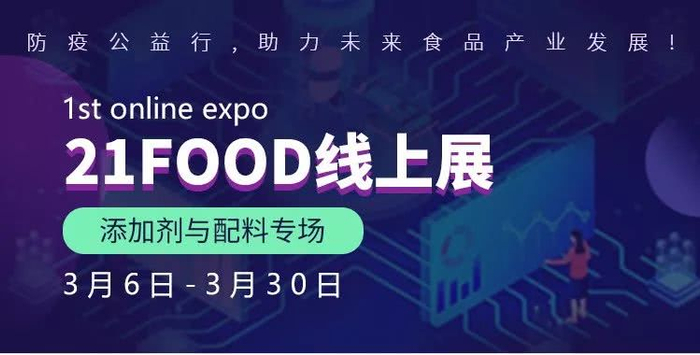 2020年3月6日,第一场集中展览——21FOOD线上展-添加剂及配料专场将全网开幕。本场展会将持续至3月30日,为期25天。