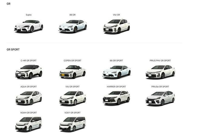 说起丰田的性能车,就不得不提旗下的丰田GRAZOO Racing旗下系列车型,强调性能和驾驶乐趣,可以理解为高性能版本,将按照性能不断增强的顺序,以三种不同的外观发布,即基本款、更为激进的GR Sport版本车型,目前来说大部分车型只在日本市场销售。因此在日本丰田的官网上,我们发现其车型类别里面,以一个独立车型栏目身份出现,并且里面的涵盖了小车、MPV以及一些家用车型。