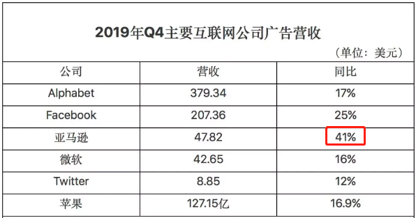 同时在数字广告市场,Google和Facebook共占据60%的广告收入,不过亚马逊正在冲击着二者的垄断格局。