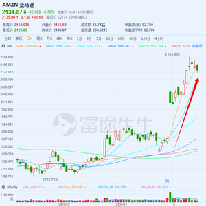 2020年1月31日,亚马逊发布了2019年第四季度财报,营收同比增长21%,净利润同比增长8%,双双超过市场预期,股价当日大涨7.38%。要知道,上个季度亚马逊的盈利同比下降26%。同时亚马逊调高了2020年第一季度的营收指引。从四季度财报公布日至今为止,其股价累计涨幅已达15%。