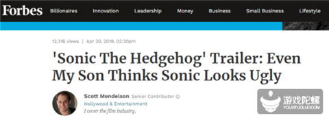 2019年4月,派拉蒙影业满心欢喜放出了影片第一个预告片,不料引发全网对伪真实版的索尼克造型的吐槽。比如福布斯(Forbes)网站发表一篇名为“‘刺猬索尼克预告片’:就是我儿子都觉得索尼克很丑”的文章。