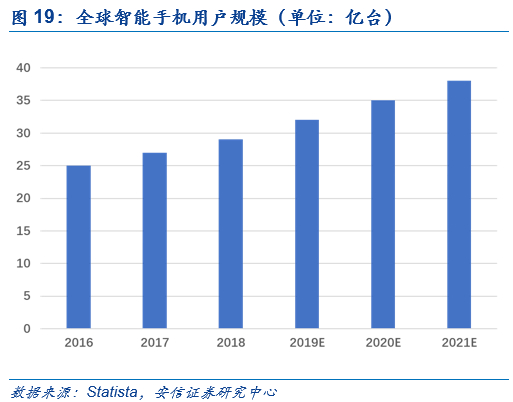 1、截至20年1月份,HMS 月活用户达4亿,有望为进入HMS软件服务商直接带来4亿增量月活用户,实现操作系统级的捆绑覆盖。根据Statista相关测算,全球智能手机用户规模在2021年达到38亿,结合华为手机近5年的市占率,假设其在2021年占有率达到20%且每台手机均搭载华为HMS服务,则对应用户规模约为8亿,目前华为HMS服务月活用户约为4亿。