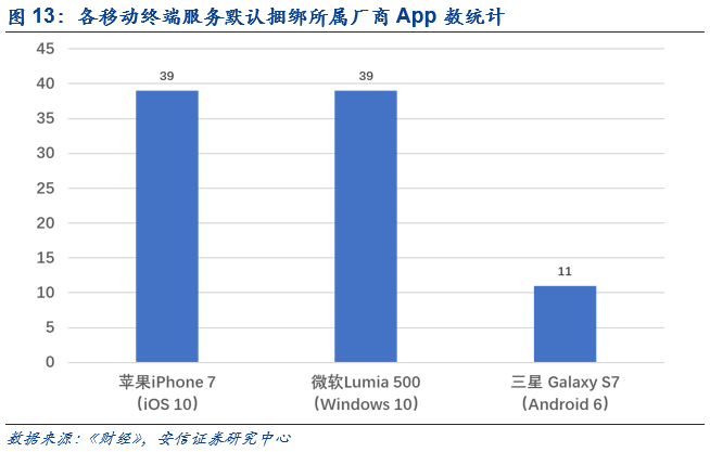 GMS为谷歌提供捆绑应用媒介,间接推广自身App产品。事实上,移动服务对于推广厂商软件产品帮助巨大。根据谷歌2016年在欧洲市场的统计,苹果iPhone 7的iOS系统内置39个苹果公司预装App;微软Lumia 500的Windows 10 Mobile内置47个微软公司预装App;三星 Galaxy S7上的Android系统内置11个自谷歌公司App。因而,通过提供GMS服务,谷歌公司可以变相要求手机厂商搭载自家App,从而实现间接盈利。