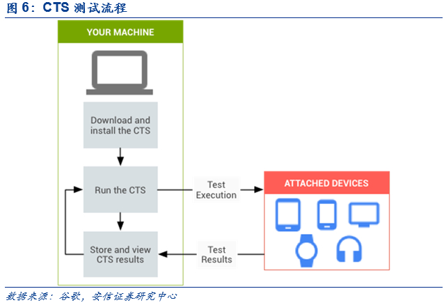(1)CTS测试:兼容性测试,全称为Compatibility TestSuite。CTS测试主要测试谷歌官方Android的API与硬件平台的兼容性,将进行超过30万个单元测试,包括签名测试、Dalvik测试、平台许可测试等。