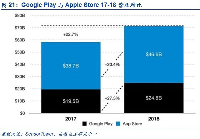 3、谷歌GMS作为安卓生态最核心商业载体,其谷歌商店18年营收就达到248亿美元,苹果商店收入更达466亿美元,随着华为HMS全球大力推广,华为商店预计有10倍以上的增长空间。根据华为官网披露,华为在HMS服务相关开发领域进行大量投入。在未来,华为还计划将提供10亿美元的奖励基金以激励开发者共同搭建HMS生态。