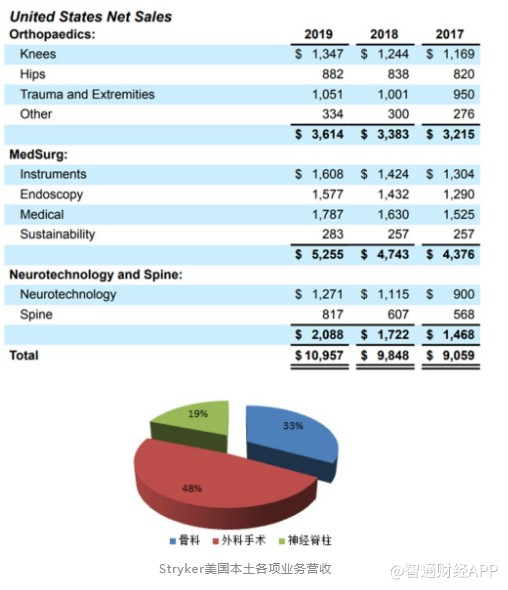 三、 Stryker2019业务状况分析:各业务稳定增长,脊柱业务发展迅猛