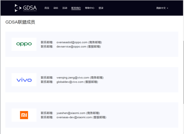 另外,小米,OPPO和VIVO三家企业在2019年8月联合成立了GDSA联盟,为这些手机厂商的商店提供统一接入入口,开发者可以通过注册平台统一提交App(包括 Android 免安装应用、游戏、音乐、电影、图书、杂志或其他数字内容或服务),覆盖了印度、印度尼西亚、俄罗斯、马来西亚等9个国家及地区。