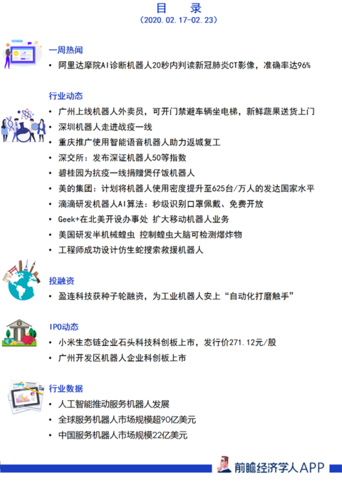前瞻机器人产业全球周报第57期:准确率达96%!阿里AI诊断机器人20秒内判读新冠肺炎CT影像