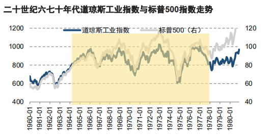 在经过二十世纪60年代前期指数攀升之后,1965年开始,道琼斯工业指数和标普500指数进入调整阶段,截止1975年年底,标普500指数上涨了6.4%,道琼斯指数则下跌了2.5%,指数在这十年间几乎处于原地踏步状态。随后指数仍然处于震荡格局,道琼斯指数直到80年代才真正走入上行通道。而另一方面,根据巴菲特致股东的信披露,1965年至1975年其年化投资收益为15.68%。