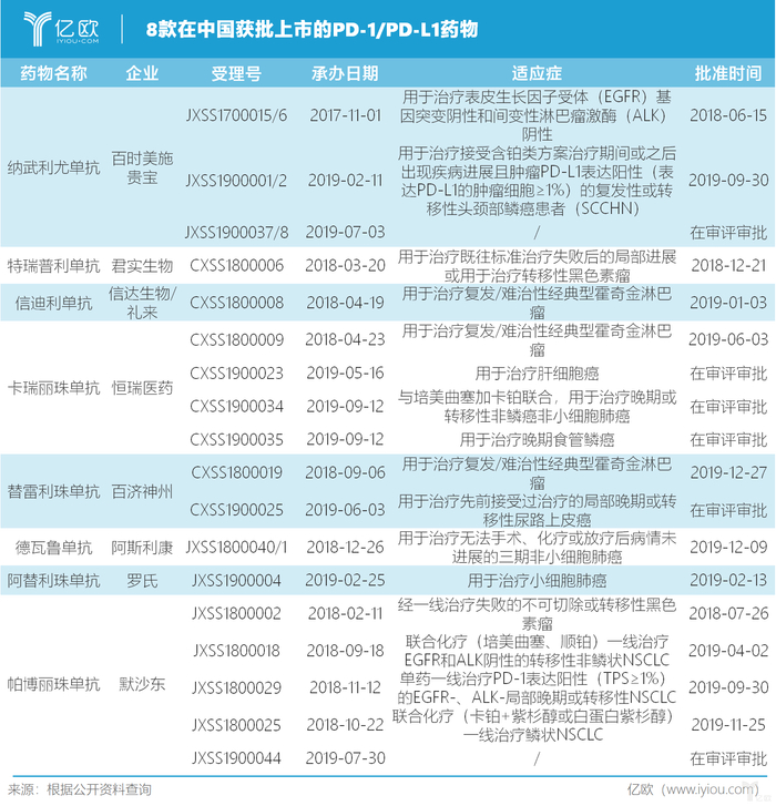目前,已有8款PD-1/PD-L1药物在国内获批上市,包括4款国产PD-1,2款进口PD-1和2款进口的PD-L1。