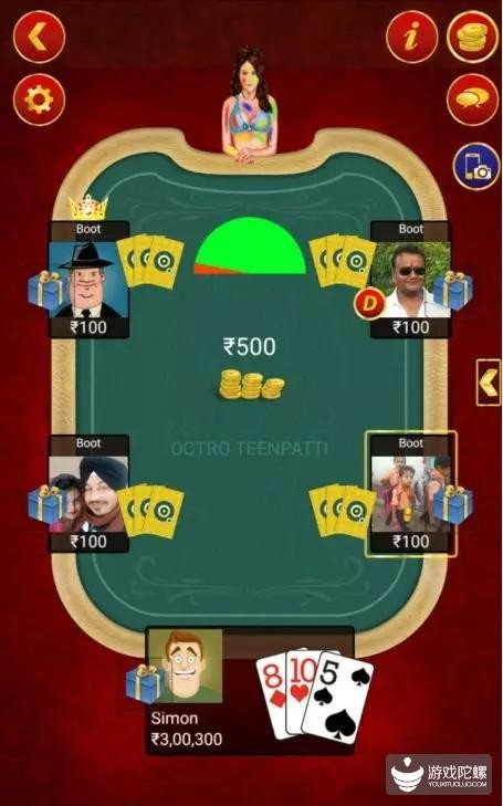 《Teen Patti》是印度本地市场的一种博彩游戏玩法。有时候,它还可以拼写成 TeenPathi,翻译成中文就是“三张牌”, 是印度本地市场的一种博彩游戏玩法。可以算是印度版的“炸金花”。