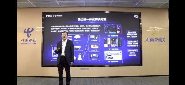 天翼物联公司以“物云筑力 翼同战疫”为主题召开线上发布会,发布七大场景的5G AIoT解决方案,助力企业抗疫复工。其中高新兴科技集团旗下机器人公司作为巡逻机器人龙头企业与天翼物联联合发布了抗疫5G测温巡逻机器人。
