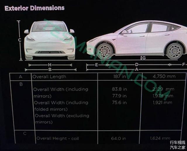 特斯拉Model Y尺寸信息曝光 车身长度达4.75米