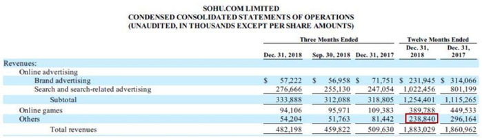 搜狐2018年四季度及全年业绩报告