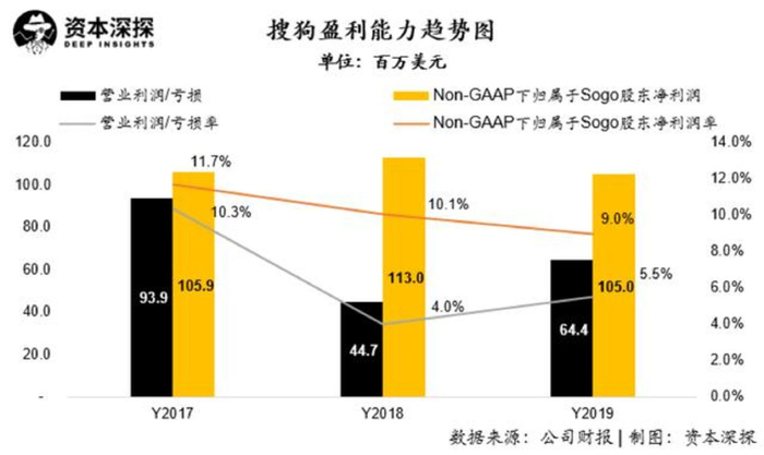 尽管搜狗在未来仍将是搜狐系内最稳定的利润来源,但可以预见其利润产生的过程将愈发艰难。流量获取成本的持续提升将促使毛利端承受巨大压力;而随着用户规模的扩大以及用户增长的放缓,公司在留存用户的维护以及新用户的拉新方面,也将付出更高的费用。