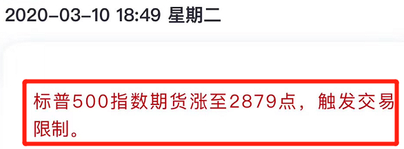 刚才,晚上7点的时候,bo姐看到条信息,是说美股盘前交易,标普500指数触发“上涨熔断”。也就是说涨幅超过了7%,触发上涨熔断。这大起大落,真是比我A有过之而无不及。