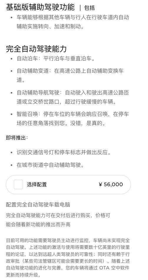 答:首先说明下,特斯拉所有车型都标配Autopilot自动辅助驾驶,但这个“自动驾驶”分两种,一种是标配的基础版辅助驾驶功能(即Enhanced Autopilot,简称EAP),另外一种是选装的完全自动驾驶能力(即Full Self Driving,简称FSD)。笔者在试过车后认为值得选装,除非真的没法再多掏56,000元出来。因为在没选装之前你的Model 3只拥有基础版辅助驾驶功能,也就是只有自动跟前车与车道保持等功能,基本可以看作是普通ACC自适应巡航。而在选配完全自动驾驶能力软件包后,该车可实现自动辅助导航驾驶(即Navigate on Autopilot,简称NOA)、自动辅助变道(无需驾驶员干预)、自动泊车与智能召唤等功能,只能说用过的都说好。
