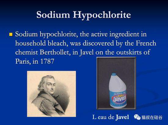 除了84消毒液,次氯酸钠已经被广泛用于日常生活的消毒,游泳池用的漂白水主要成分也是次氯酸钠。那么次氯酸纳又是谁发明的呢,谁用最早将这种化学品用于消毒呢?
