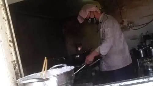 外卖商家老板娘把刚从外面买来的火腿肠,用牙咬开外包装就直接分切配到炒饭中。掉进脏东西的饭盒,在桌上磕一下,就直接装饭。饭勺用完后就直接放在全是污渍的锅盖上。