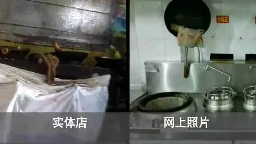 在“饿了么”网站上有家网名为“食速达”的商家,菜品色泽艳丽,厨房不锈钢灶具洁净透亮。而实体店的厨房却是一个昏暗狭小的制作间,墙上、灶台上、饭锅上到处是黑乎乎的油渍。