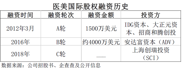 股权融资方面,据公开信息,医美国际在上市前完成过三轮融资。第一轮由IDG资本等机构投资1500万美元;第二轮由安达富资本(ADV)投资近4000万美元;第三轮由上海创瑞投资(SCI)投资。