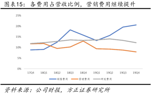 毛利率:19Q4毛利3.98亿元(YoY+101.9%,QoQ+13.3%),毛利率20%(YoY+2.8pct,QoQ+0.9pct)。