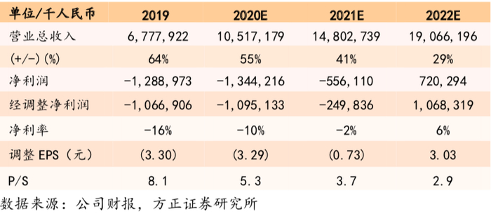 我们预计公司2020-2022营收为10,517/14,803/19,066百万元,经调整净利润为-1,095/-250/1,068百万元,经调整摊薄EPS-3.29/-0.73/3.03元,对应当前P/S为5.3/3.7/2.9X,对应单用户估值为60美元。公司活跃用户增长显著,其参与度及留存率仍保持平稳,我们认为用户流量的扩张将使平台进一步跻身一线视频平台,相应流量的变现也将推高收入规模,维持“推荐”评级。