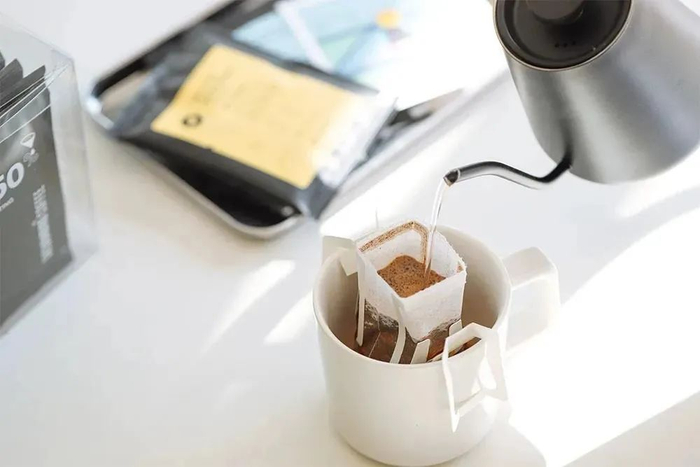 挂耳咖啡是日本UCC公司在2001年发明的,就是将咖啡粉装在无纺布或棉纸的滤包里,然后挂在杯子上,直接用水冲泡。