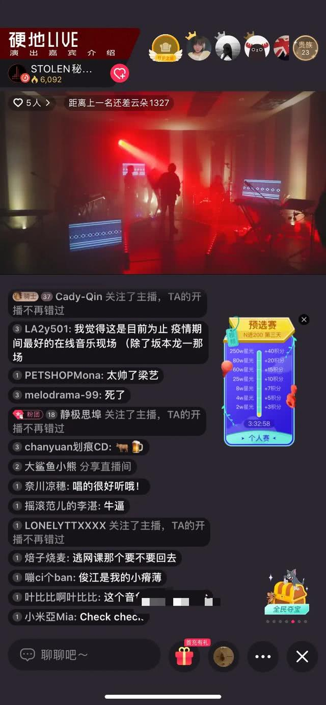 3月16日刚上线的硬地LIVE,则专注于高品质的独立音乐人演出直播,为用户呈现出堪比现场的专业音乐直播。比如3月16日便邀请了曾作为殿堂级乐队 New Order 巡演嘉宾的 “STOLEN秘密行动”,通过灯光、机位、特效为用户完整的呈现线下演出的现场感,同时平台也专门开辟一个专访时间,将用户感兴趣的话题收集后拿来访问乐队成员。