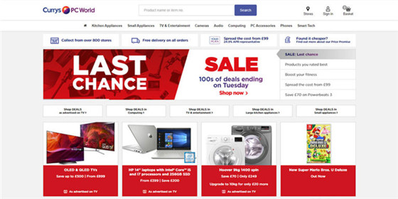 Currys最初是一家电器零售商,通过英国和爱尔兰专门销售家用电子产品和家用电器。其母公司Dixons Carphone(跨国电信公司)将其与PC World(英国电脑零售连锁店集团)合并。Currys PC World也提供销售家电和电信设备的电商平台。