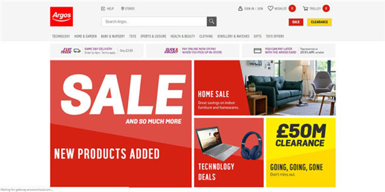 Argos隶属英国零售商Sainsbury’s,销售电子产品、家居和园艺产品、服装、玩具和体育器材等。除了更传统的业务,Argos也成为了英国电商的领导者。