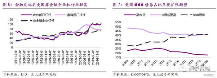 而3月6日之后,事情开始发生变化,风险资产的下跌向避险资产扩散。当天,俄罗斯未能与OPEC就石油减产达成一致,3月9日WTI原油价格下跌24.59%,标普500指数也在开盘不久即下跌7%,触发“熔断”。3月11日沙特和俄罗斯开启“石油价格战”,相继宣布增产。一方面,在疫情发酵的背景下,油价暴跌增加市场对信用和流动性风险的担忧:由于美国页岩油公司大量通过垃圾债融资,市场担心油价下跌将导致页岩油企业资金断裂,进而违约。而美国企业较高的债务水平、低利率融资环境导致BBB级债务比例偏高,在投资者风险偏好下降,普遍去杠杆的过程中,产生了一定的信用和流动性风险。另一方面,风险资产“暴跌-抛售”循环加重了市场的震荡,随后,黄金和债券市场也出现了剧烈地波动,投资者的快速赎回以及杠杆化交易要求补充保证金可能激化了这种跨资产类别的共振。