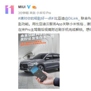 原标题:比亚迪DiLink携手小米推出NFC车钥匙,便利升级 来源:CCTIME飞象网