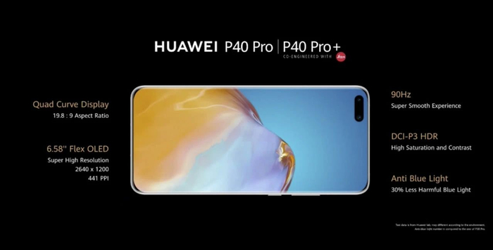 P40 Pro和Pro+采用了相同6.58英寸的90Hz屏幕,同时它们首次在手机上使用了四曲面屏幕的设计,保证了正面屏占比在视觉观感上更大,因为镜头设计不同,两款手机重量有所差异,P40 Pro重量209克,P40 Pro的重量达到226克。