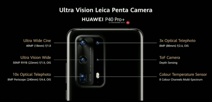 P40 Pro+的五摄中,全球首发了一个独立10倍的潜望式镜头,这是目前业内采用潜望式镜头定焦光学方案中,焦距最长的镜头。据悉华为在这个潜望式的镜头中调整了之前的光路结构,采用了两个反光镜结构延长了光路,达到更长的焦距效果。