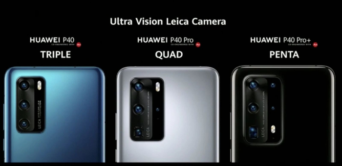 摄像头是P40系列最大的看点。P40三款机型分别拥有三、四、五颗镜头模组。