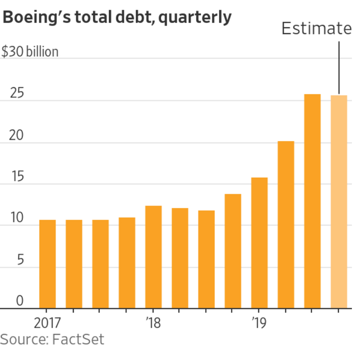 波音这轮危机,最直接的原因是借钱太多,负债太高,面临资金枯竭的危险。