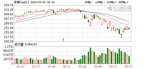 当地时间3月27日,美国大型科技股全线走低。据数据,截至收盘,苹果跌4.14%,股价跌至250美元下方,报247.74美元;谷歌跌4.53%,微软跌4.11%,Facebook跌4.01%,亚马逊跌2.83%,奈飞跌1.62%。