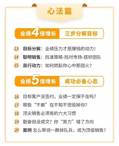 12节技能+8节心法,从搞定关键人,到拆解目标、再到调整心态,理论加实践,360度教你从小白成为顶级销售。