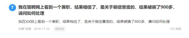 3月30日,有媒体报道称,市民小王在“智联招聘”上看到一个兼职,“对方表示是类似于刷单那样的工作,但没有明确说。”