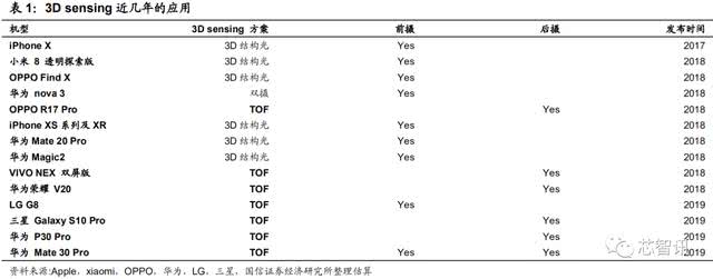 而在目前的3D市场,3D结构光技术早已经成为了一项主流的3D传感技术。特别是在2017年苹果率先推出搭载3D结构光iPhone X的引领之下,之后的OPPO Find X、小米8透明探索版、华为Mate 20 Pro、华为Magic 2等众多手机都开始引入了3D结构光,用作3D人脸识别解锁。