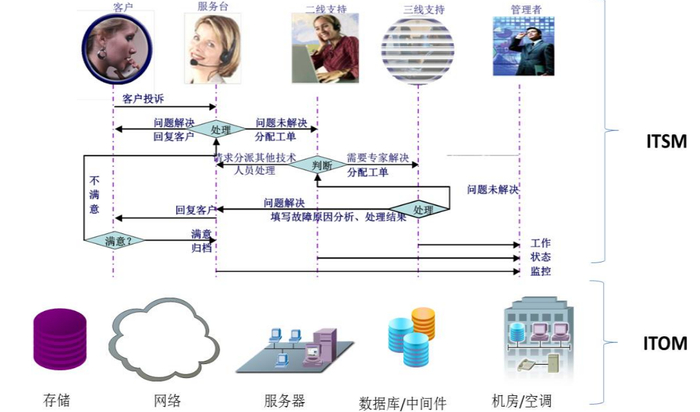 ITOM的目的在于对IT基础设施的运行状态进行实时的监控,ITSM的目的在于帮助IT部门建立起流程规范化的管理系统,服务全部面向于企业内部的IT部门,帮助IT部门的员工提升工作效率,减少错误可能。