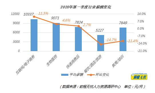疫情下,互联网行业、生物医药行业薪酬逆势增长,餐饮/酒店/旅游及教育/培训等服务行业受到较大冲击。