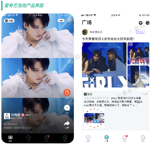 爱奇艺泡泡是在 2018 年独立出来的一款追星 App,平台中汇集了各种明星动态、影视综焦点,用户可在其中发布短视频、动态等相关内容。同时,当爱奇艺有热剧开播时,还会邀请明星在泡泡中直播、翻牌等。此外,不定期举办的线下见面会、赠送节目录制名额、独家专访等等,也吸引了大波粉丝用户的到来。