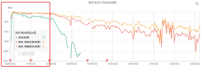 不过如果游戏真的开发出了,前期小说、电视机积累的粉丝效应,会让游戏在上线初期就获得较大的用户量。如楚乔传游戏在上架 App Store 前期,就直接冲进角色扮演免费榜、策略游戏免费榜 Top10。