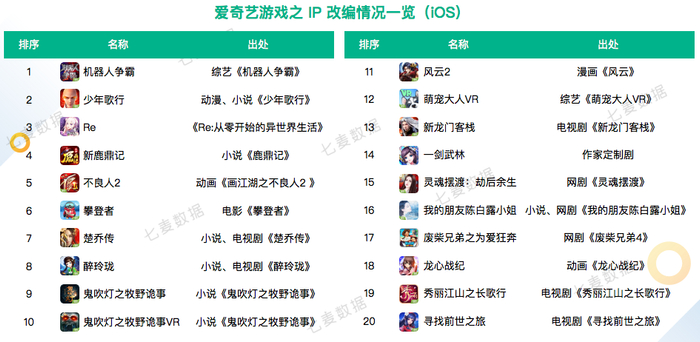 从目前来看,爱奇艺游戏主要以角色扮演、策略经营为主。其中不少是经由动漫、小说、网剧等热门 IP 改编而来。
