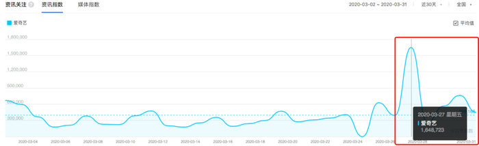 网友、明星的二次传播与模仿,《青春有你2》成功破圈出道。独播综艺的火爆,也势必会带动平台的曝光和用户。百度指数显示,该片段在播出的第二天,爱奇艺资讯指数暴涨,远远高于近 30 日的平均值。