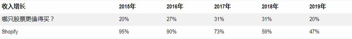 Shopify的规模较亚马逊小,因此增长速度快很多,但两家公司去年的收入增长均有所放缓。