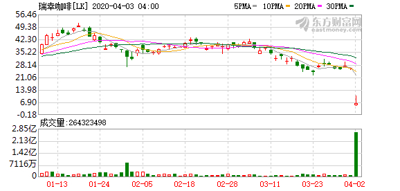 4月2日晚,瑞幸咖啡在提交给SEC的文件中,自曝公司首席运营官刘剑和部分员工伪造业绩22亿元人民币。当天,瑞幸咖啡开盘后触发6次熔断,收盘股价跌幅为75.57%。业内人士称,此次事件的爆发,瑞幸咖啡很有可能面临巨额罚单,集体诉讼也有可能导致破产。