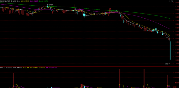 神州租车的大股东神州优车也难逃暴跌的命运,其跌幅一度超过25%,股价最低下探至9.48元,同样创下历史新低水平;收盘前跌幅收窄至21.75%,报收10.04元。前一个交易日神州优车的总市值为345亿元,经此番“跳水”后今天总市值为270亿元,一举蒸发75亿元。
